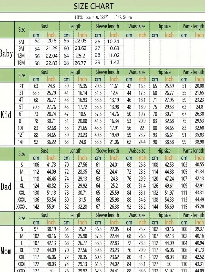 A: For example, size 6T for Kids, size M for Mother and XL For Father,