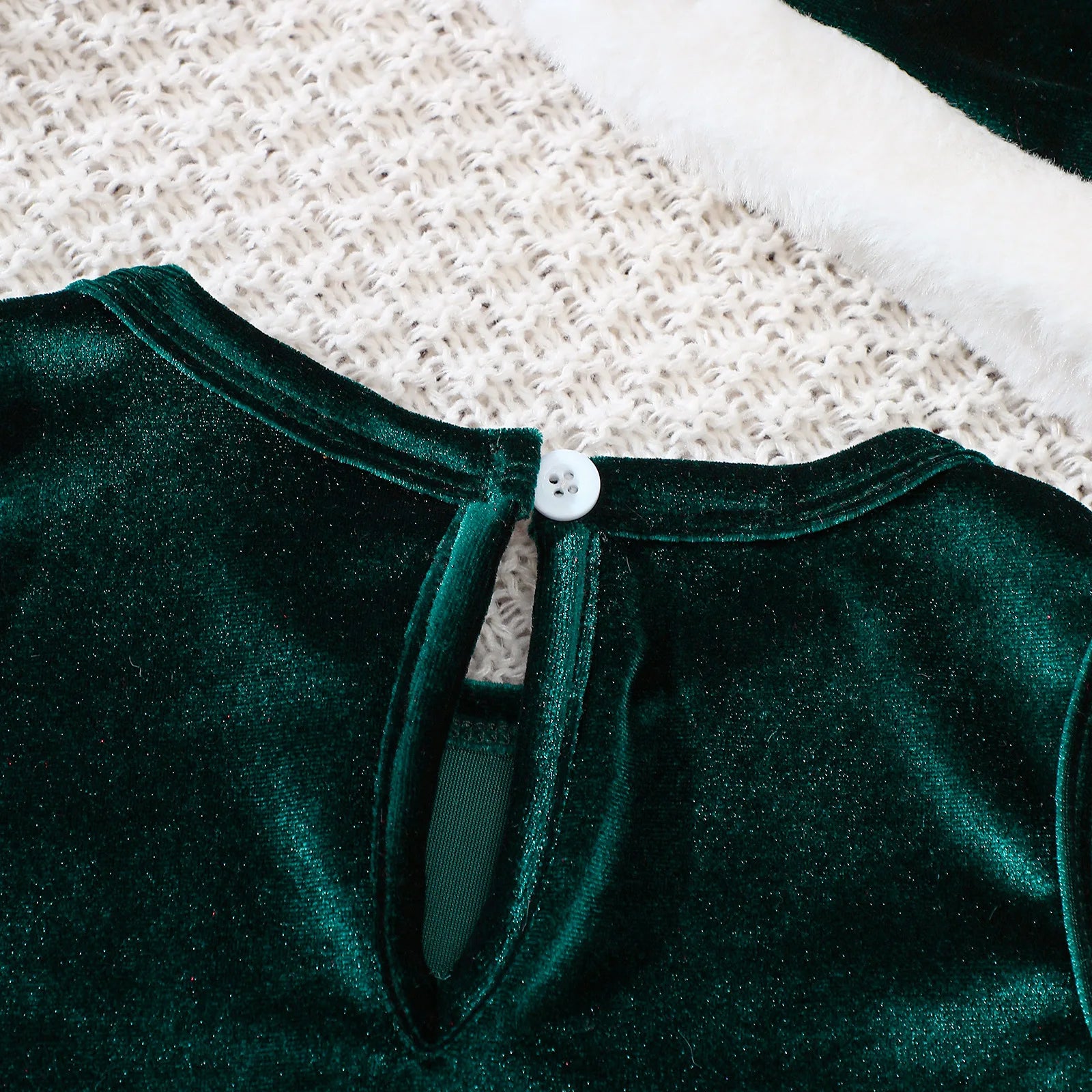 Girls Sleeveless Velvet Christmas Dress with Matching Hat
