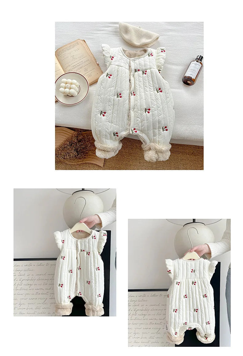 Baby Clothes Autumn and Winter Cotton and Velvet Thickened Vest Cute Baby Girl's Warm Climbing Clothes for Going Out in Winter