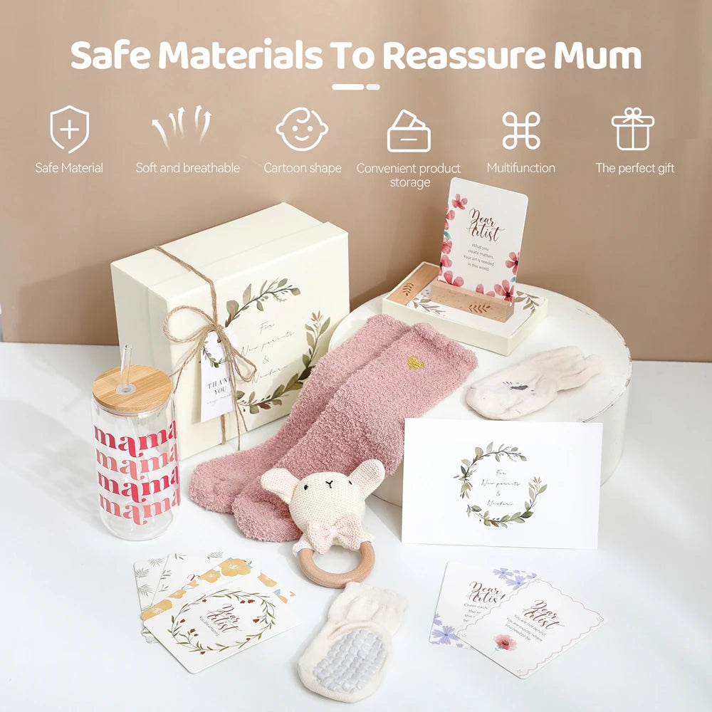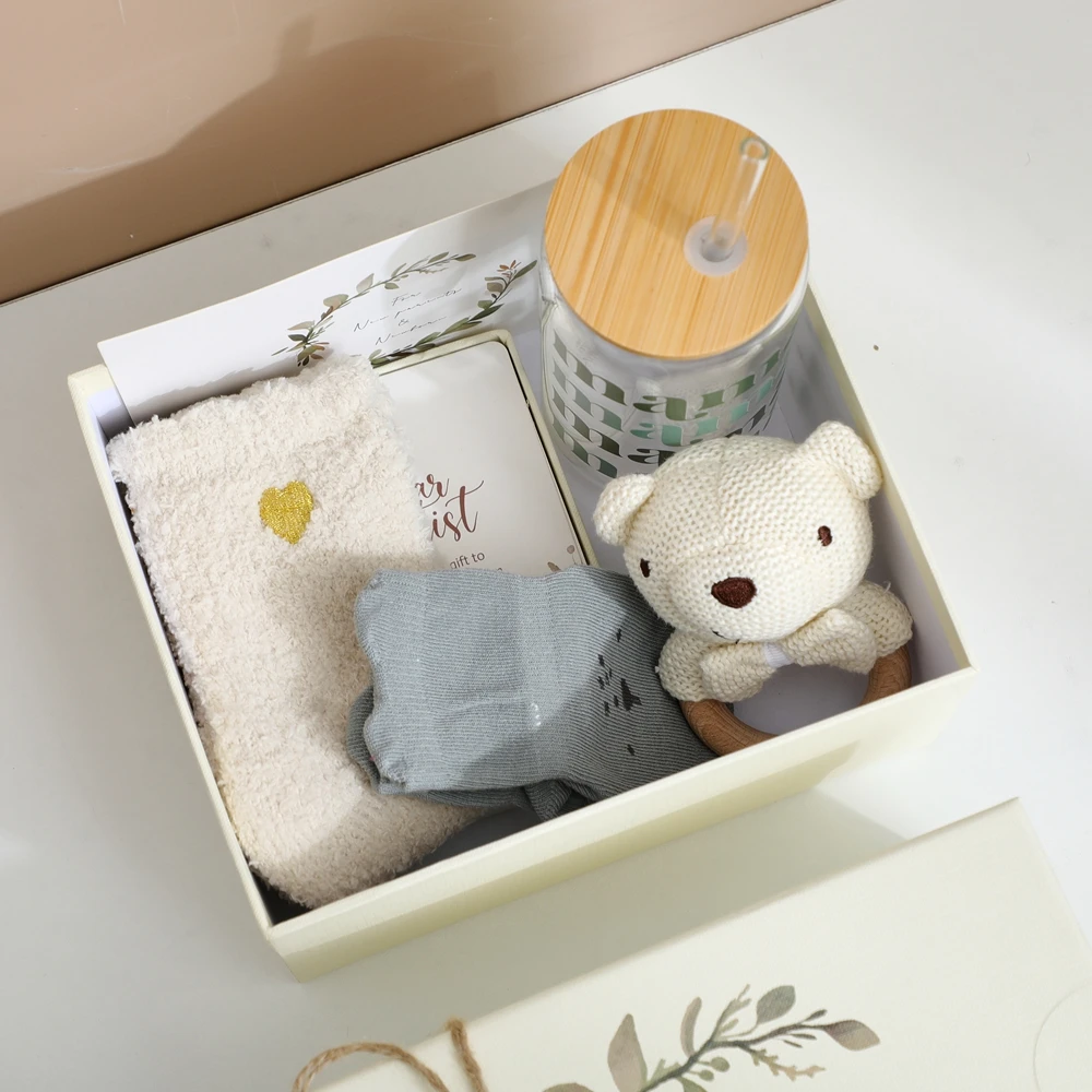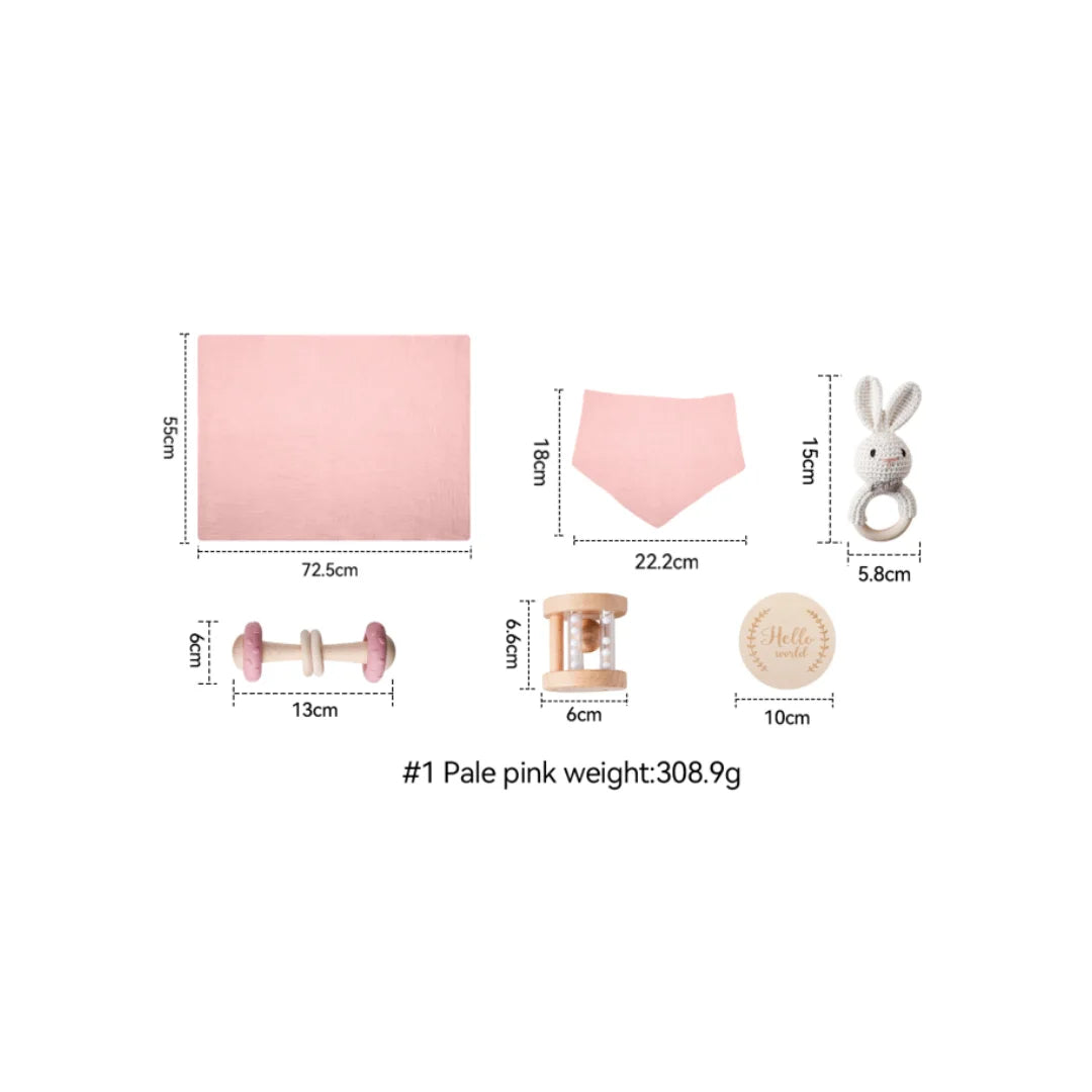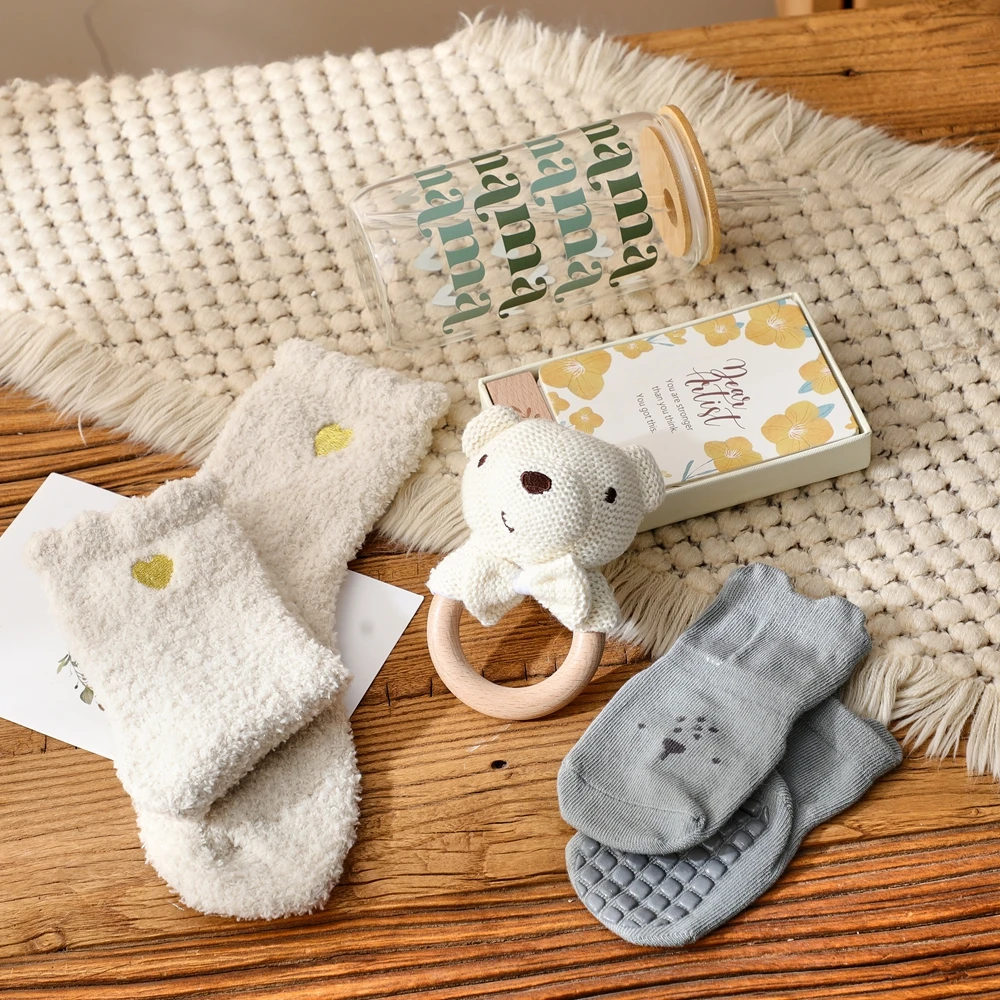 Bathing Set for Newborns Montessori Cotton Towel Toothbrush Cup Socks Rattle Toy Growth Milestone Gift box Photography props