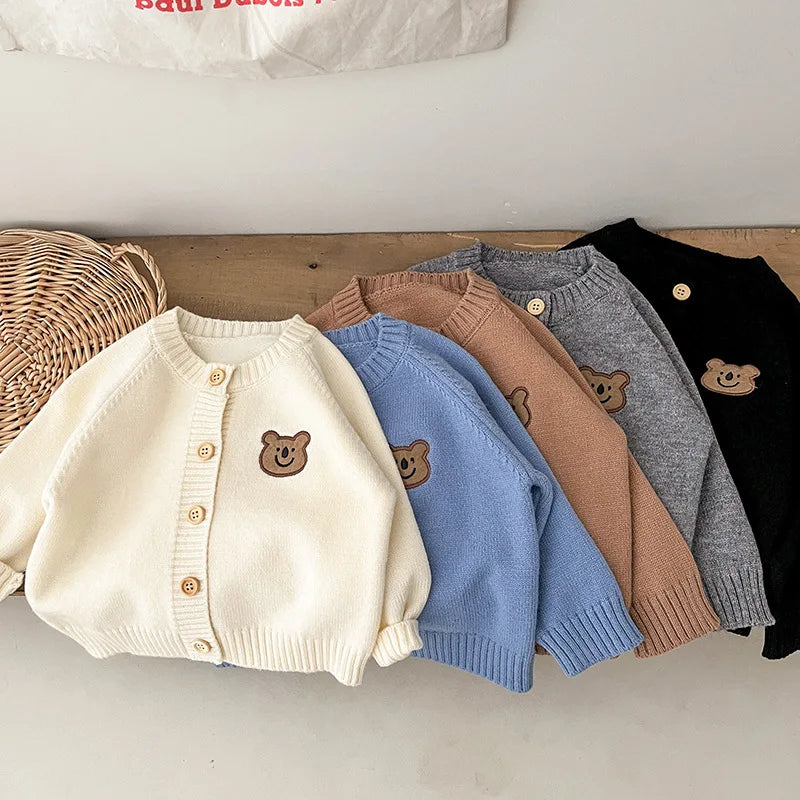 Cute Bear Knit Baby Girl Coat Children's Knitted Cardigan Long Sleeved Top Baby Sweater Outdoor Wear Baby Clothes New Born