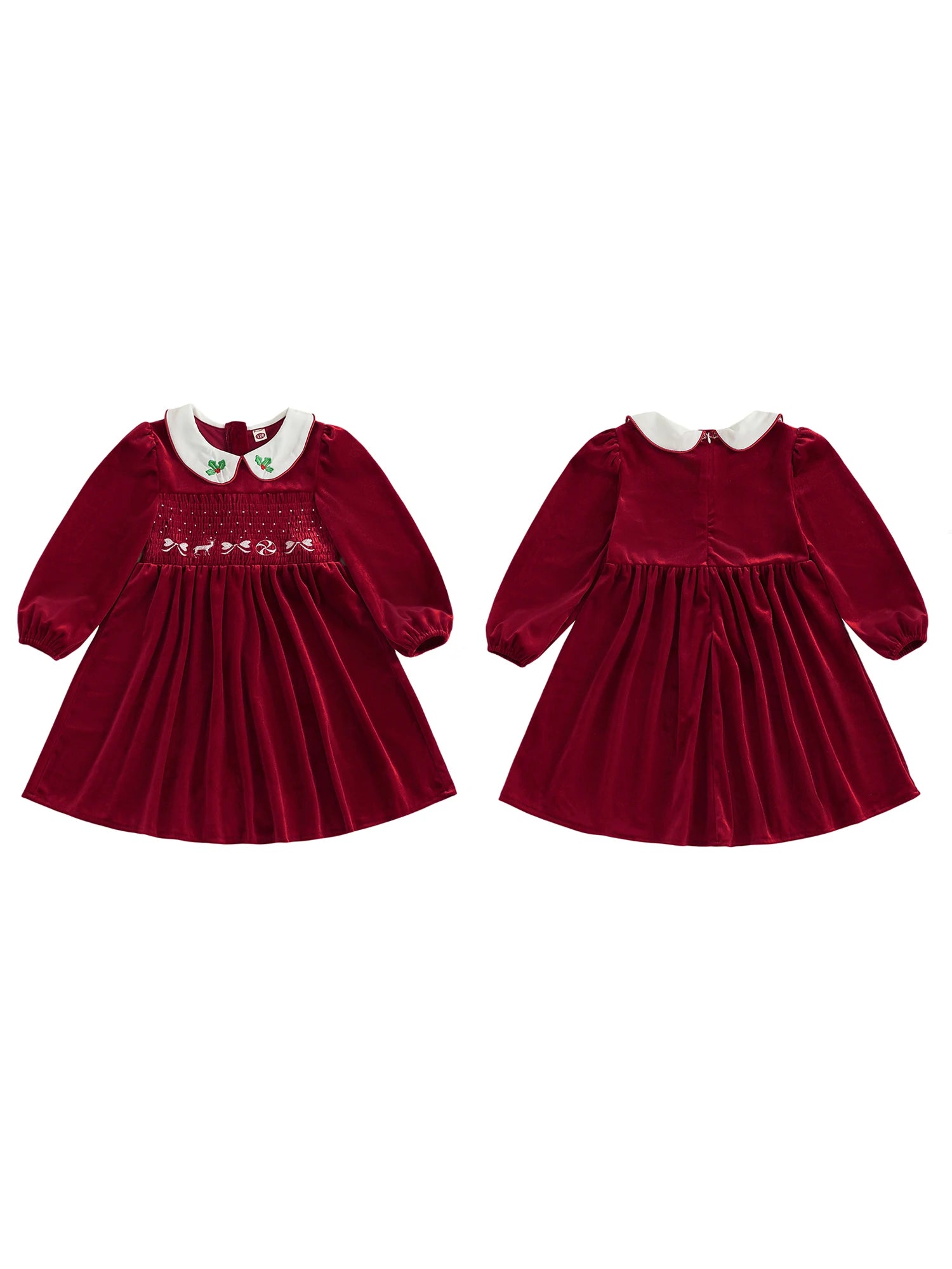 - Classic Design: Each dress features a charming white Peter Pan collar beautifully adorned with holly leaf embroidery, adding a touch of holiday spirit.