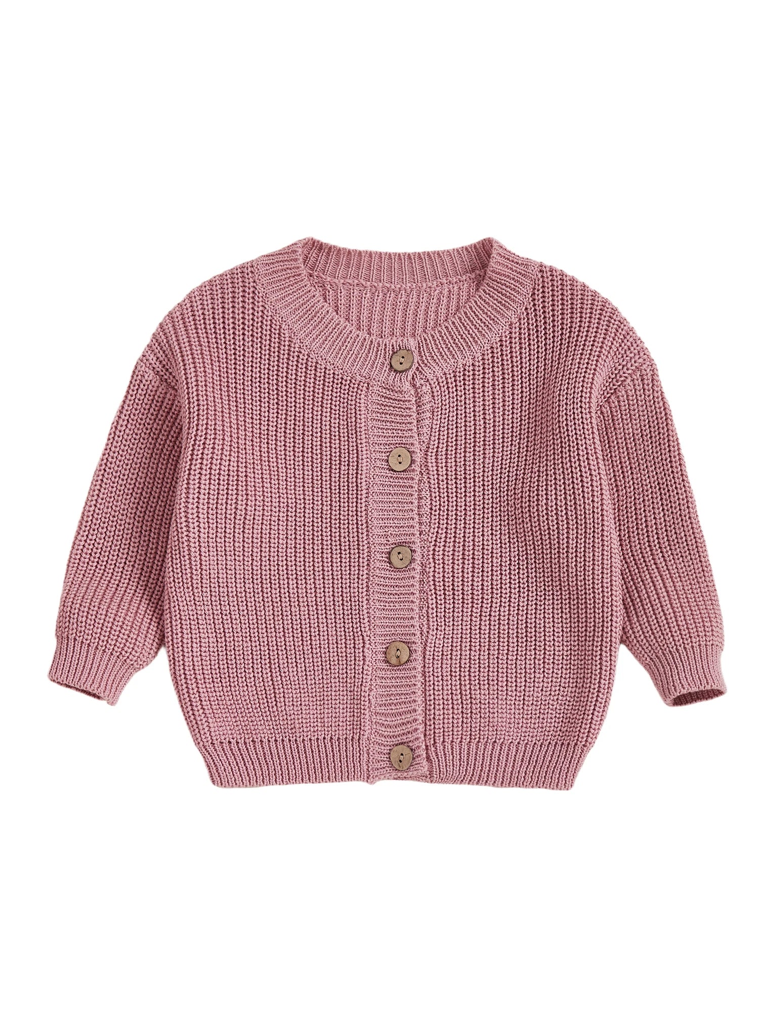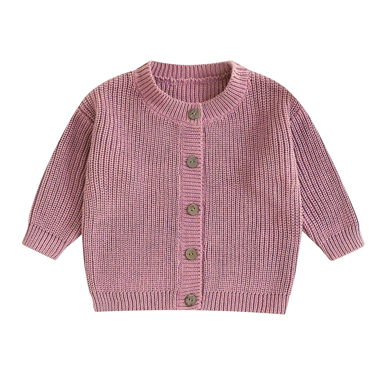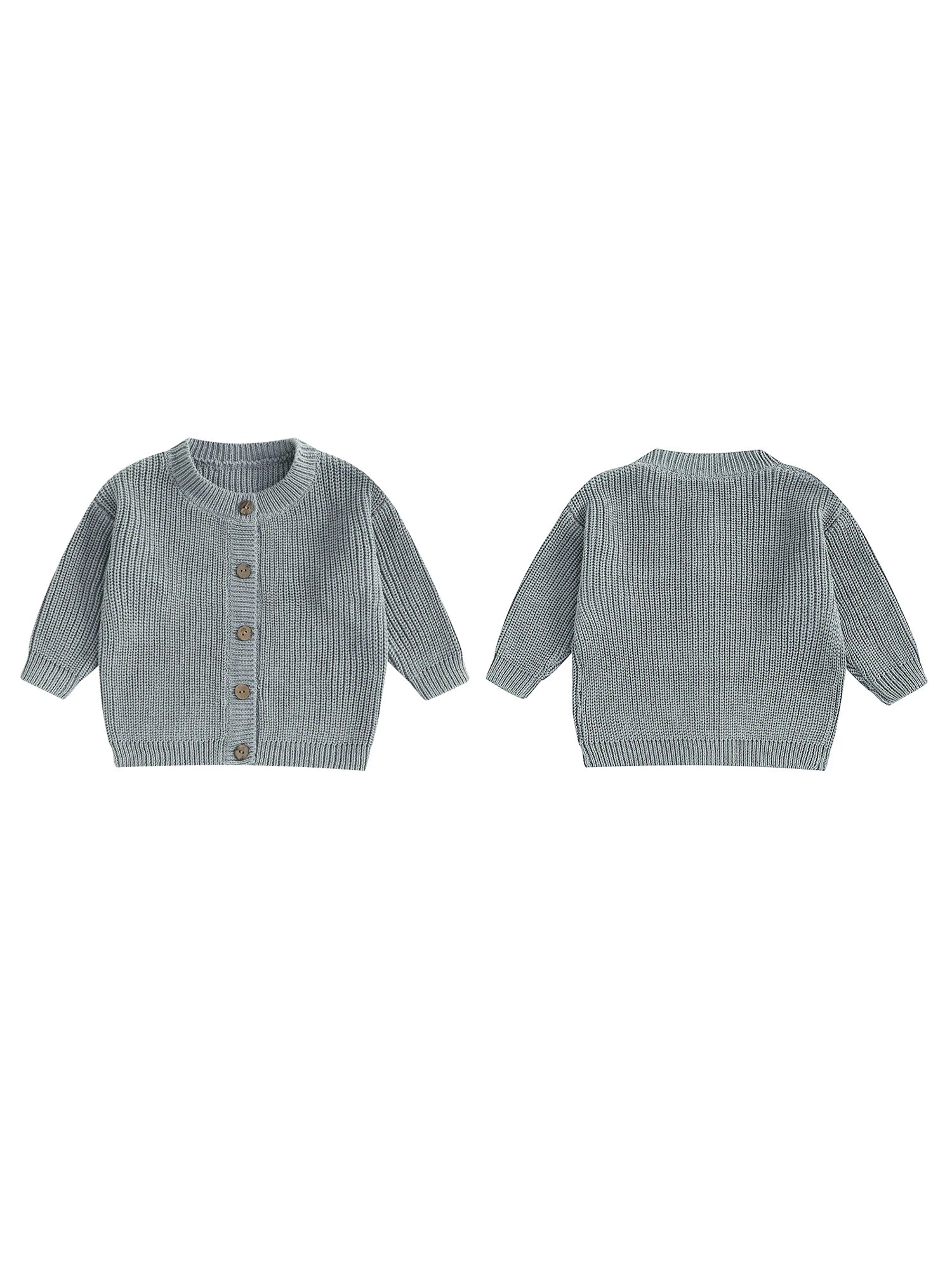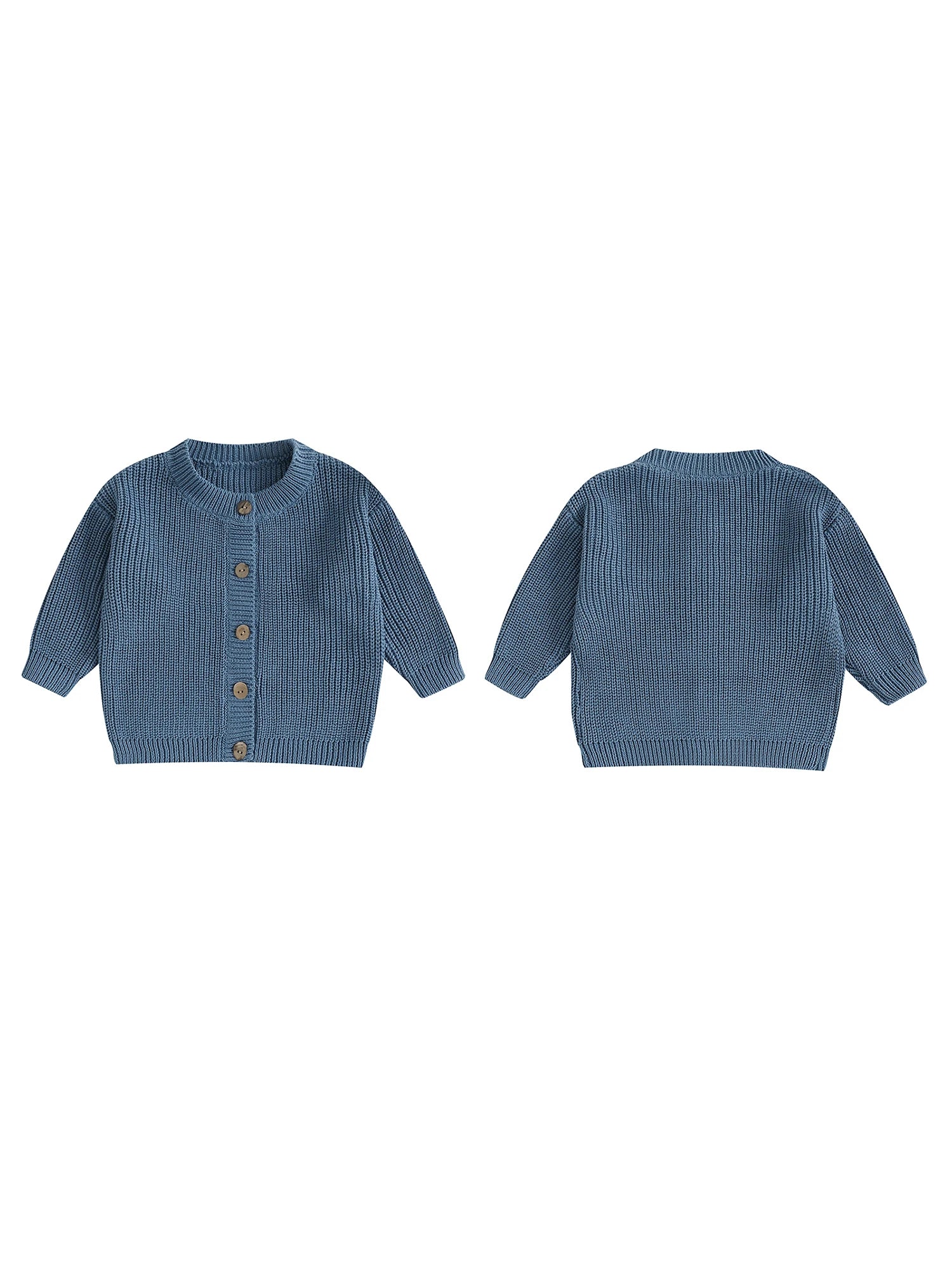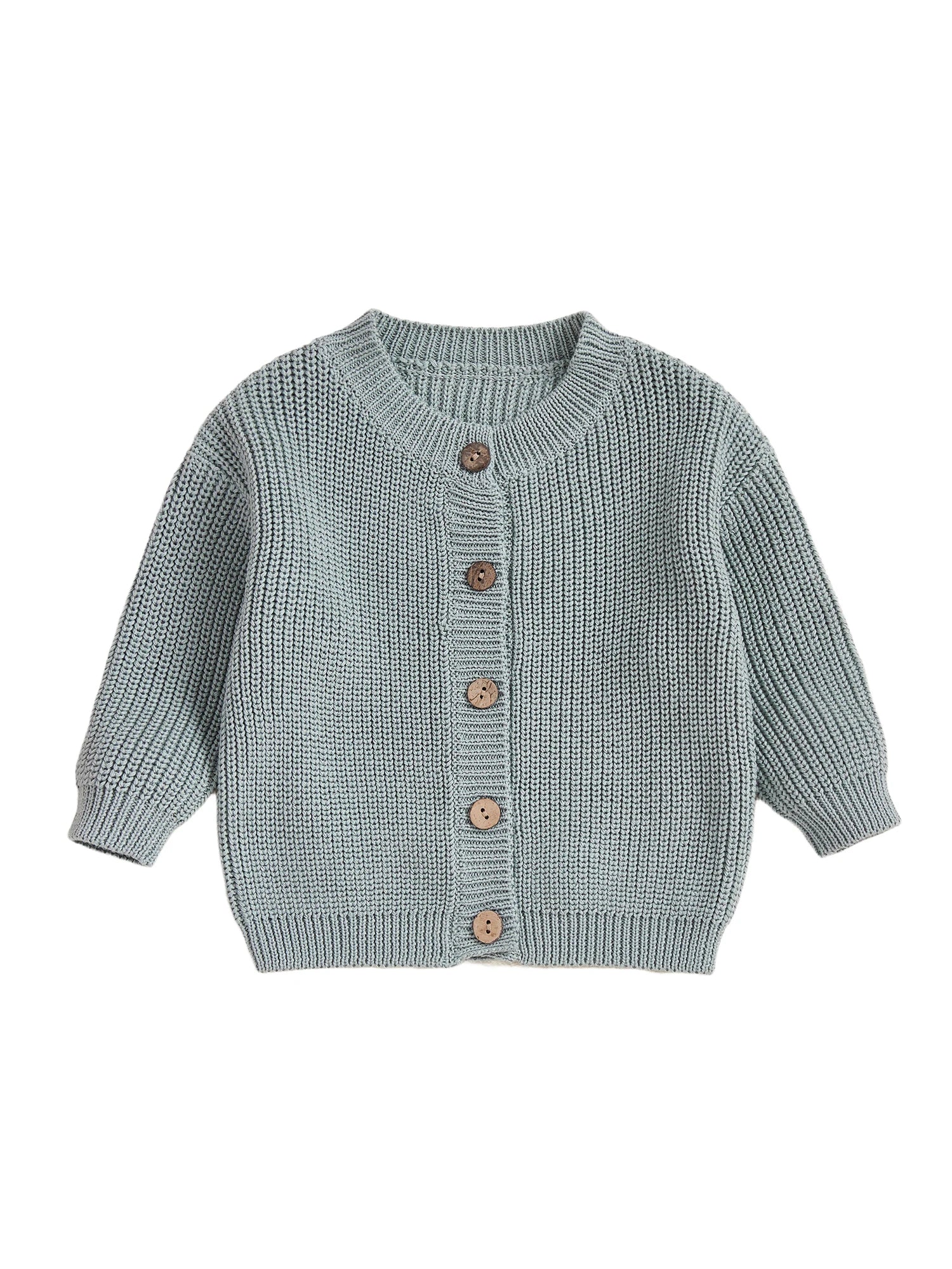 Girls Knit Button Up Sweaters Long Sleeve Round Neck Solid Color Knitwear