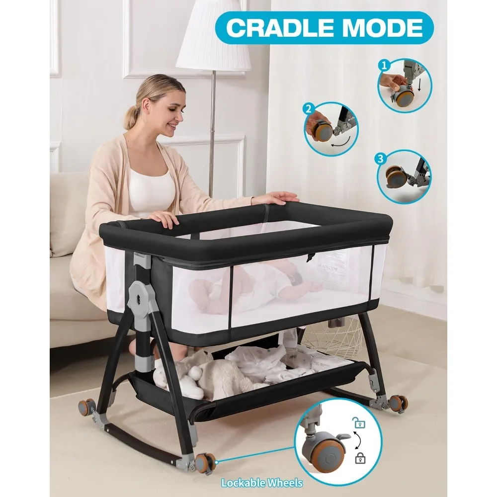 - Multi-functional Baby Bassinet: This baby bassinet can be quickly converted into three modes, standalone bassinet to foster independent sleeping habits, rocking bassinet for baby, and bassinet bedside sleeper which provides easy access to your baby