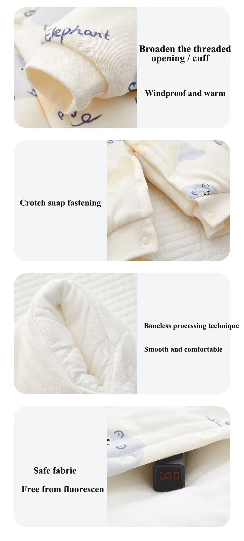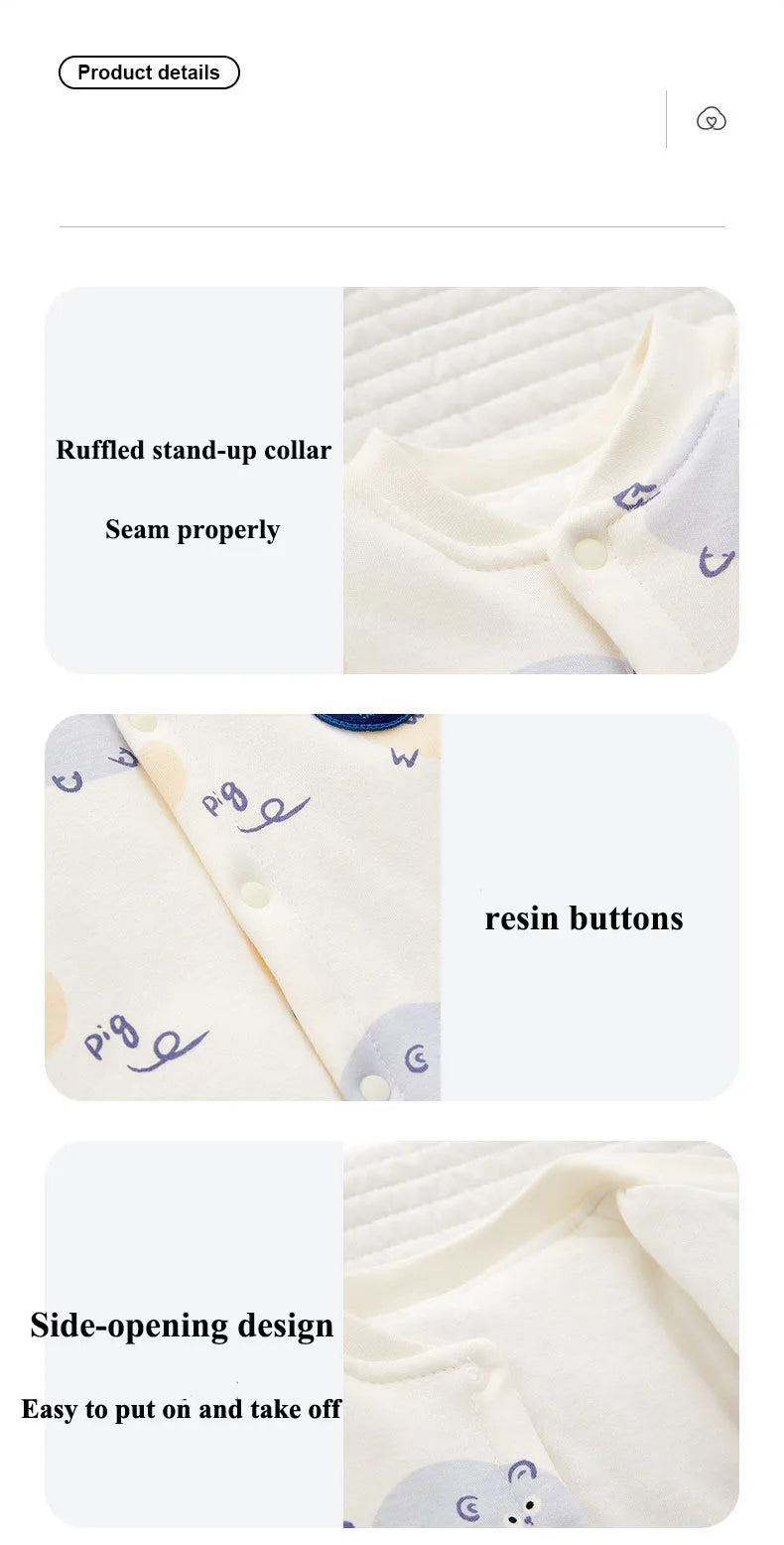 Xmas 2025 Winter 100% Cotton Thick Baby Jumpsuit Class A Skin Friendly 0-18M Side-release Button Animal Print for Boys Girls